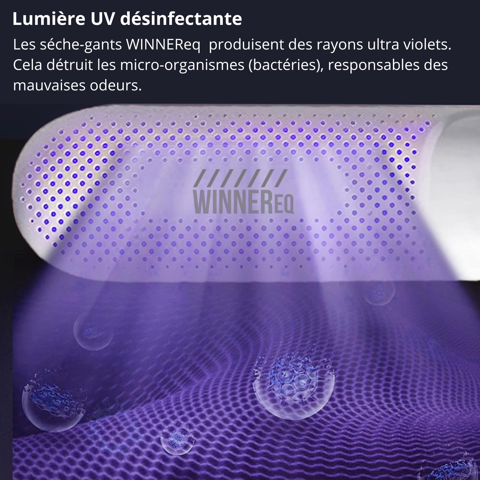 – les rayons UVC détruisent les bactéries les plus résistantes, pour assurer une hygiène irréprochable à l’intérieur de vos gants.